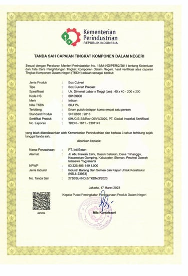 Sertifikat Tingkat Komponen Dalam Negeri (TKDN)